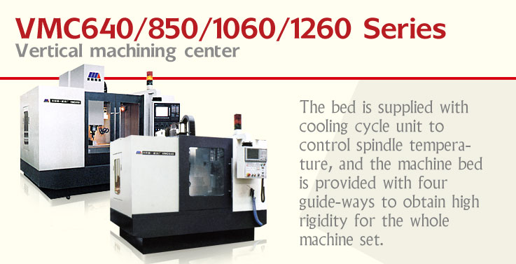 VMC series machines are designed with vertical bridge frame. The reasonable configuration of guide-ways and ball screws driving system of high quality enable the spindle to obtain higher speed and rapid moving speed, as well as to realize high efficiency machining.